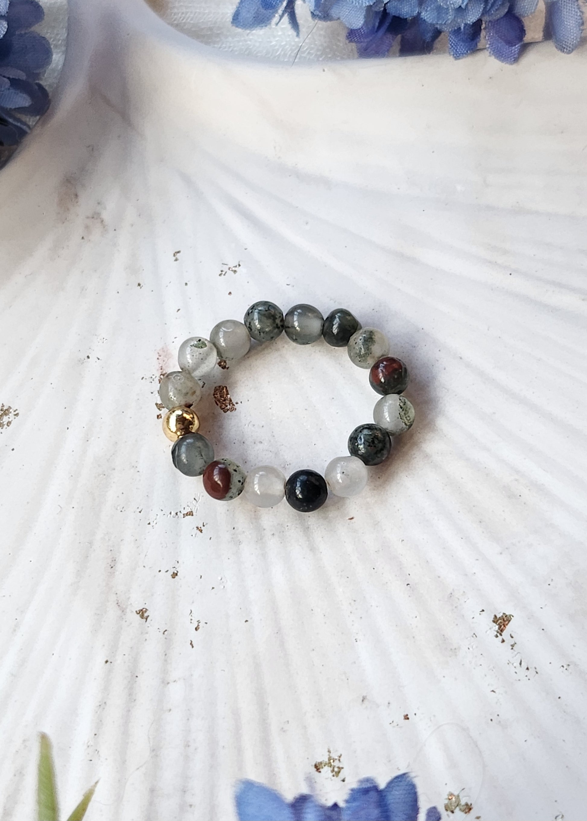 Anello a molla realizzato in Eliotropio, pensato per adattarsi al dito con naturalezza e comfort. Un gioiello essenziale ma ricco di energia, che unisce bellezza autentica e versatilità, perfetto da indossare ogni giorno o da abbinare ad altri anelli!