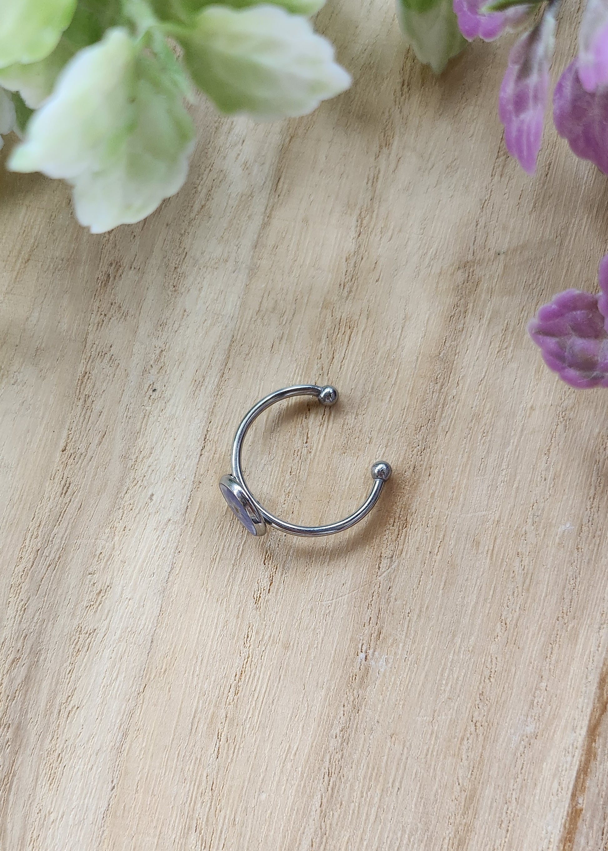 Anello in acciaio inossidabile con fiore secco stabilizzato e racchiuso in resina epossidica, per un gioiello che conserva nel tempo la bellezza dei veri fiori.