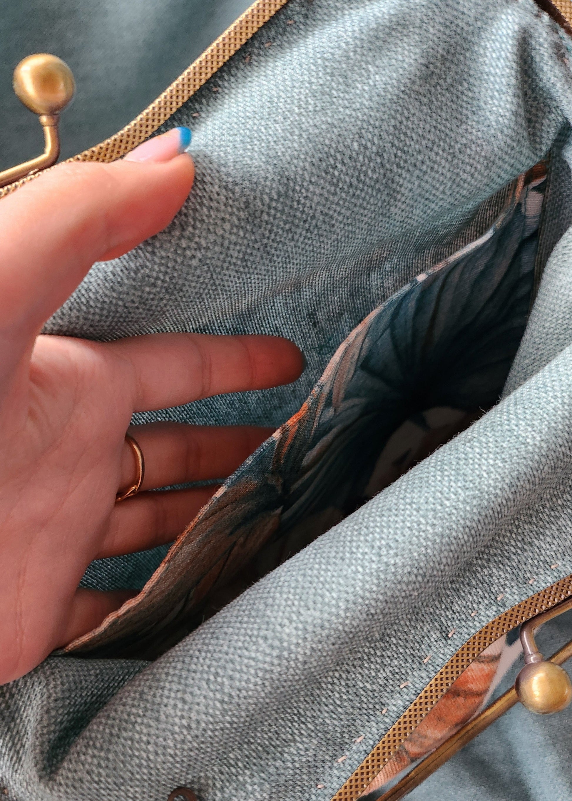 Aggiungi un tocco di eleganza artigianale al tuo look con questa borsa in cotone fatta a mano, realizzata con cura e attenzione ai dettagli. Il tessuto resistente presenta un raffinato motivo botanico dalle sfumature delicate, dove toni caldi e freddi si intrecciano creando un’eleganza leggera e contemporanea.