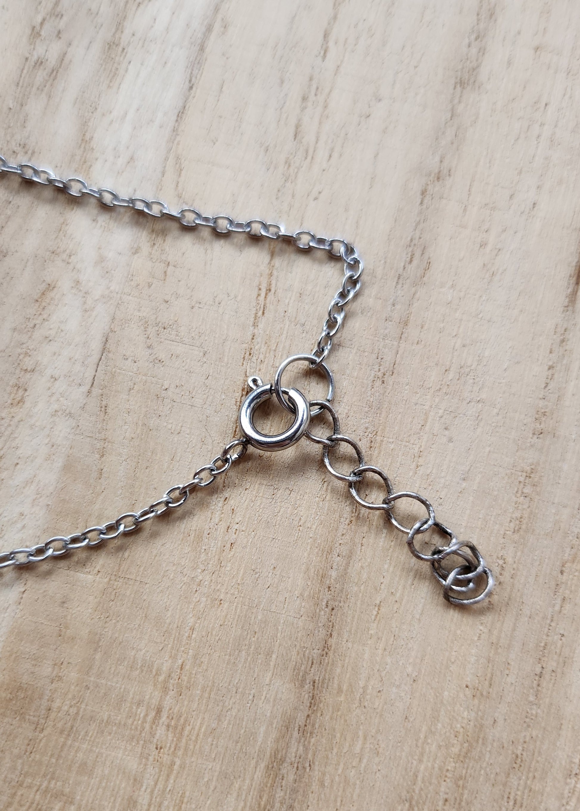 La selenite è conosciuta come “pietra della chiarezza”. Tradizionalmente associata alla purificazione e alla calma interiore, dona alla collana una vibrazione eterea e luminosa, quasi come un piccolo astro catturato nella sua forma più pura.