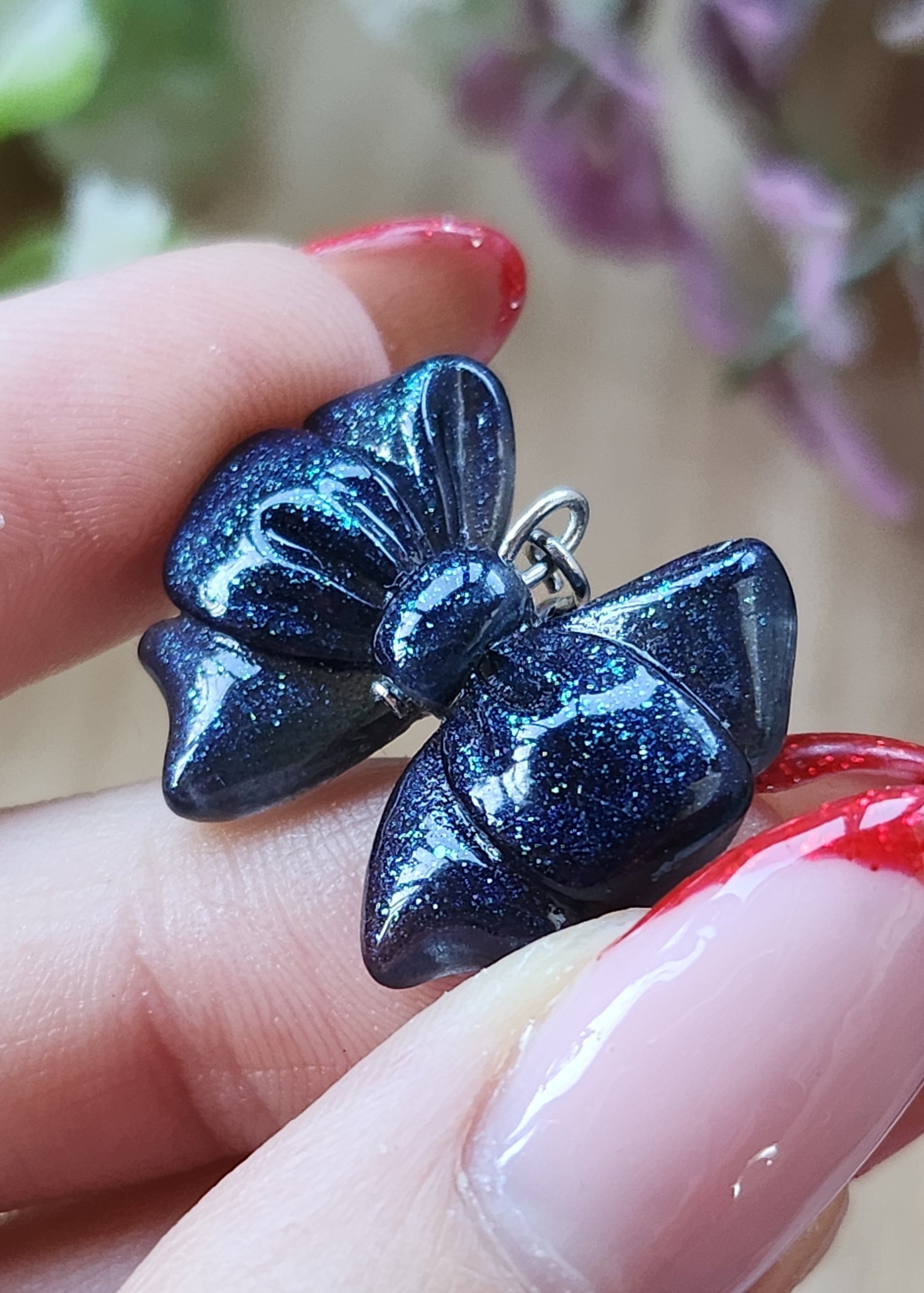 - Fiocco in resina blu scuro con glitter