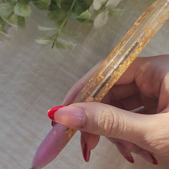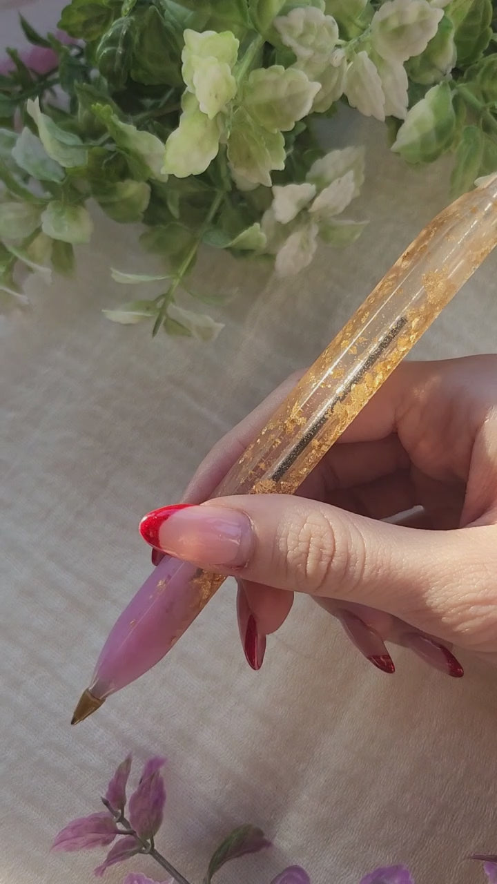 La superficie lucida della resina cattura la luce e mette in risalto i giochi cromatici interni, trasformando un gesto quotidiano come scrivere in un piccolo momento di magia e bellezza.
